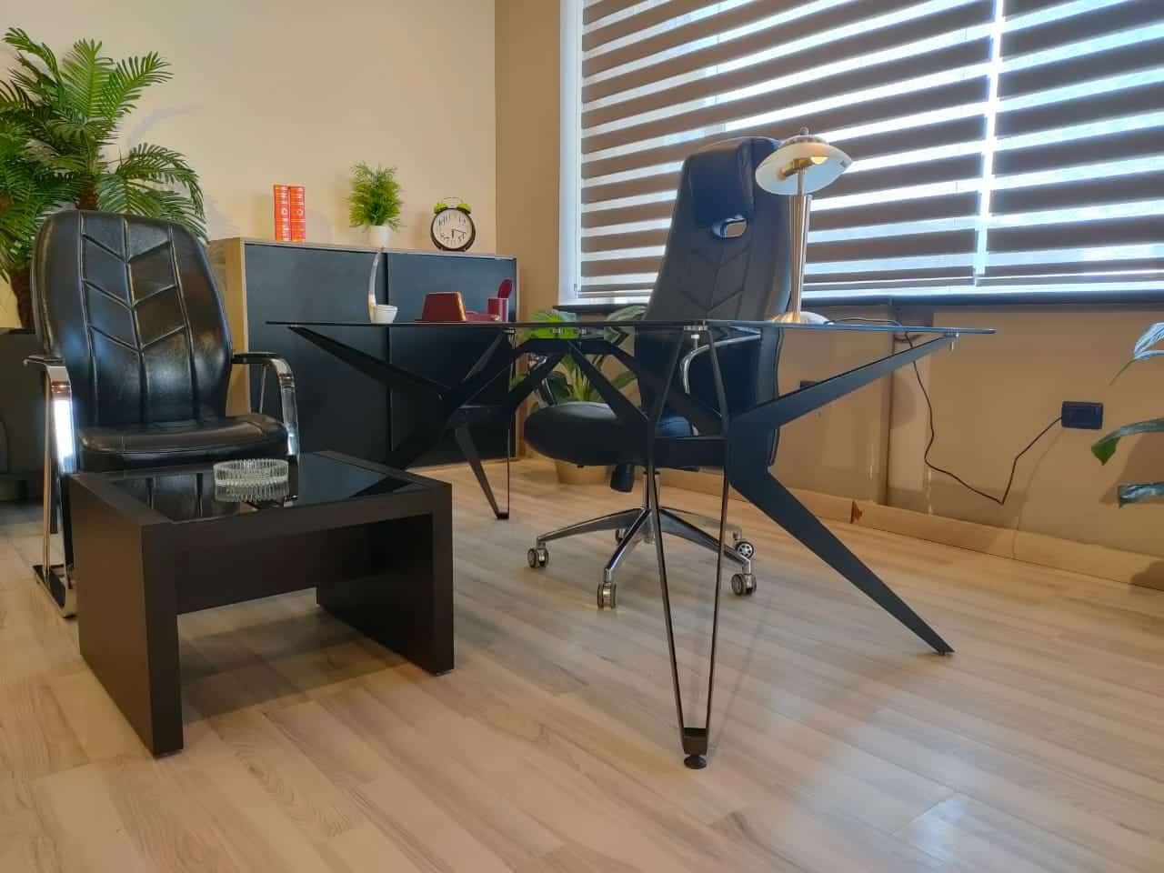 The Spider Executive Desk Modern Glass and Metal Office Table perfectly blends modern design with industrial strength. Crafted with a sleek black metal frame and a tempered glass top, it brings bold elegance and durability to any contemporary workspace.